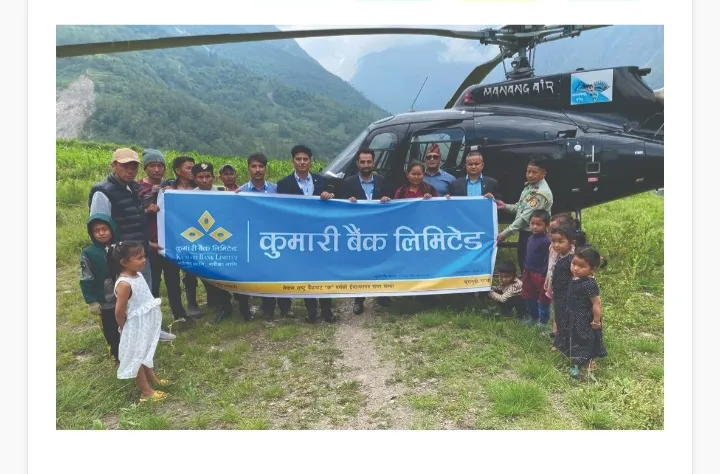गाेरखामा हेलिकप्टर चार्टर गरेर सामाजिक सुरक्षा भत्ता पुर्याउँदै कुमारी बैंक