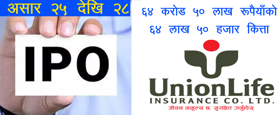 यही २४ गतेबाट ६४ करोडको आईपिओ निष्काशन गर्दै युनियन लाइफ इन्स्योरेन्स