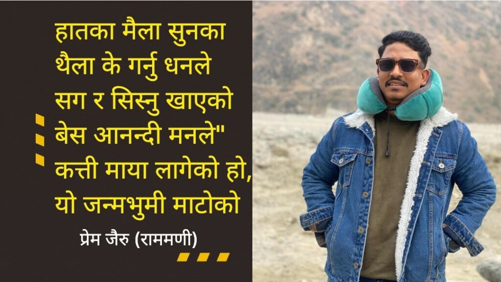 कत्ती माया लागेको हो ? यो जन्मभुमी माटाेको शहर भित्रका खाल्डाखुल्डी, बिग्रिएको बाटोको गाउँघरमा भत्किएका काल्ना अनि बाँझो पाटाेको कत्ती माया लागेको हो ? यो जन्मभुमी माटाेको। देश समृद्धि हुन्छ भन्ने आशा त अझै छ सँगै नेताहरुको सोच परिवर्तन हुदै छ हरेस नखाउ साथी स्वदेशमा विकासको मुल अनि भ्रष्टाचारीहरु को फाइल खुल्दै छ कत्ती माया […]