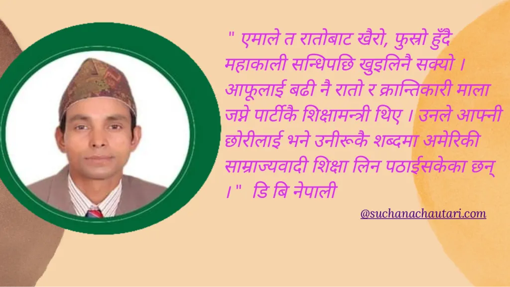 यिनको जनवादी शिक्षाको गफ र क्रान्तिकारी रटान यति चाँडै माटामा कसरी मिलाई सकेछन् हँ ? : डि बि नेपाली