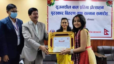 खोटाङको नाम राख्दै “सिर्जनशील बाल प्रतिभा प्राेत्साहन पुरस्कार २०७७” बाट आश्रुती ओझा सम्मानित