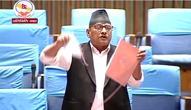 संसद भवनमै बजेट पुस्तिका च्याते संसद अम्मर बहादुरले