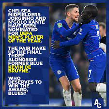 केभिन डी ब्रुइन, एनगोलो कान्टे र जोर्गिन्हो यूईएफए बर्ष खेलाडी को लागी छनोट