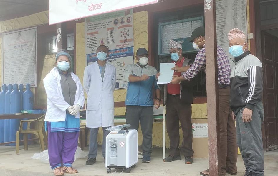 ‘एक एक पाइला’संस्थाद्वारा ऐसेलुखर्कको प्राथमिक स्वास्थ्य केन्द्रलाई अक्सिजन कन्सन्ट्रेटर हस्तान्तरण