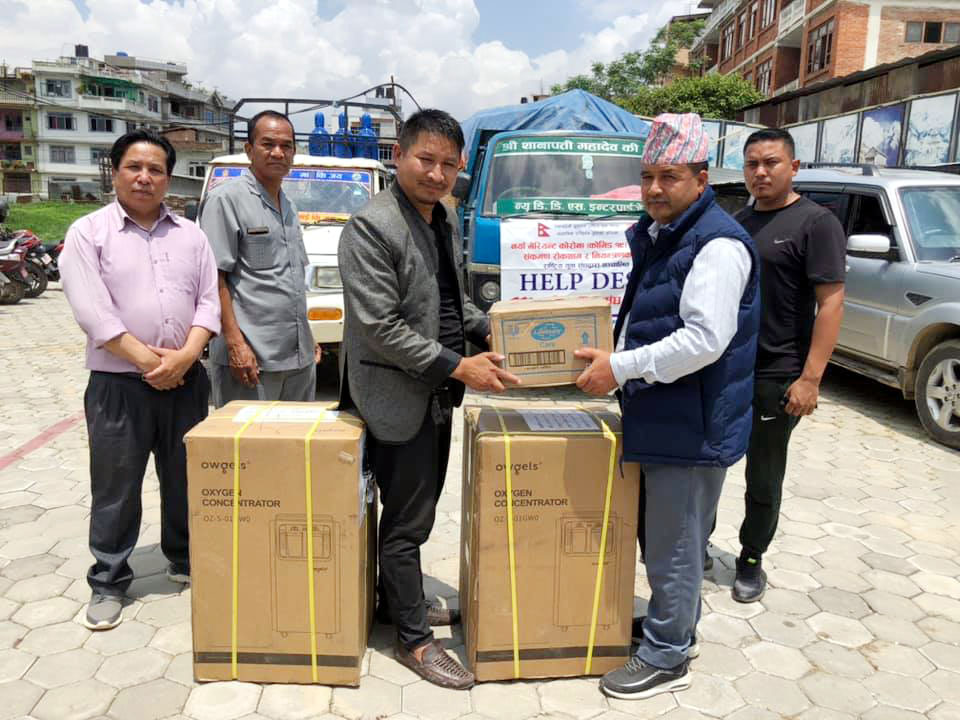 धमलाको पहलमा धादिङमा अक्सिजन कन्सन्ट्रेटरसहित स्वास्थ्य सामाग्री र खाद्यान्न वितरण