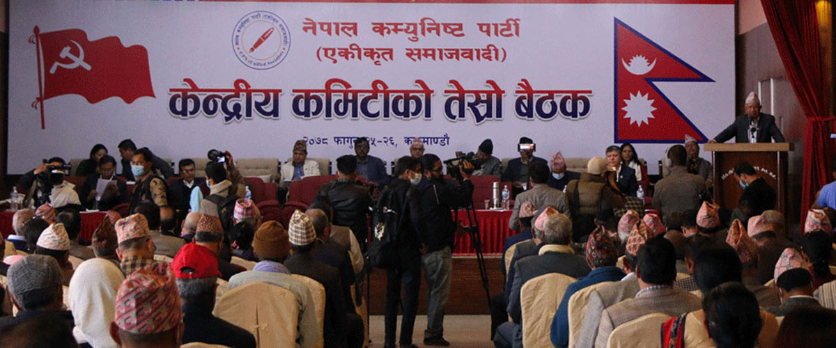 काठमाडौं । नेपाल कम्युनिष्ट पार्टी (एकीकृत समाजवादी) केन्द्रीय कमिटीको तेस्रो बैठकले अध्यक्ष माधवकुमार नेपालले प्रस्तुत गरेकोे राजनीतिक प्रतिवेदन परिमार्जनसहित पारित गरेको छ ।