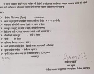 १, तिर्थराज भट्टराईकाे नाममा दाेर्पामा १६-२-३-० जमिन ।