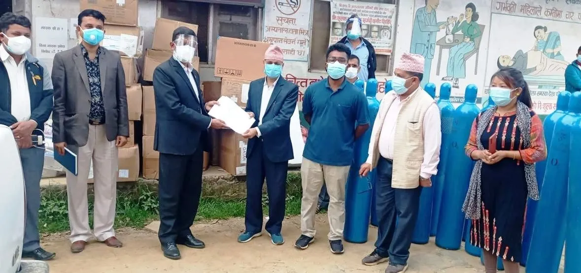 स्वास्थ्य तथा जनसंख्या मन्त्रालय, स्वास्थ्य सेवा बिभागबाट ९ लाख ७ हजार ६६० रुपैयाँ बराबरको अक्सिजन सिलिण्डर, भिटिएम, एन्टीजेन किट, पिपिइ गाउन लगायतका स्वास्थ्य सामग्री स्वास्थ्य कार्यालयमा आइपुगेको हो ।