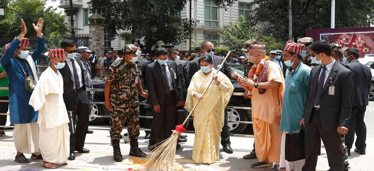 सुन्धारामा आयोजित एक समारोहका बीच भण्डारीले रथयात्राको शुभारम्भ गरेकी हुन् । सो क्रममा भण्डारीले झाडुले रथ रहने वरिपरिको स्थान सफाइ गरेकी थिइन् ।