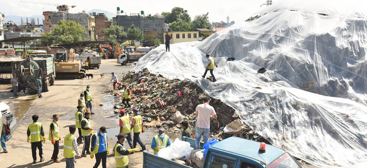 काठमाडौं । काठमाडौं महानगरपालिकाले टेकुस्थित ट्रान्सफर स्टेशनमा थुप्रिएको फोहोरमा जीवातु९जैविक तरल पदार्थ० हालेर प्लाष्टिकले छोपेको छ ।