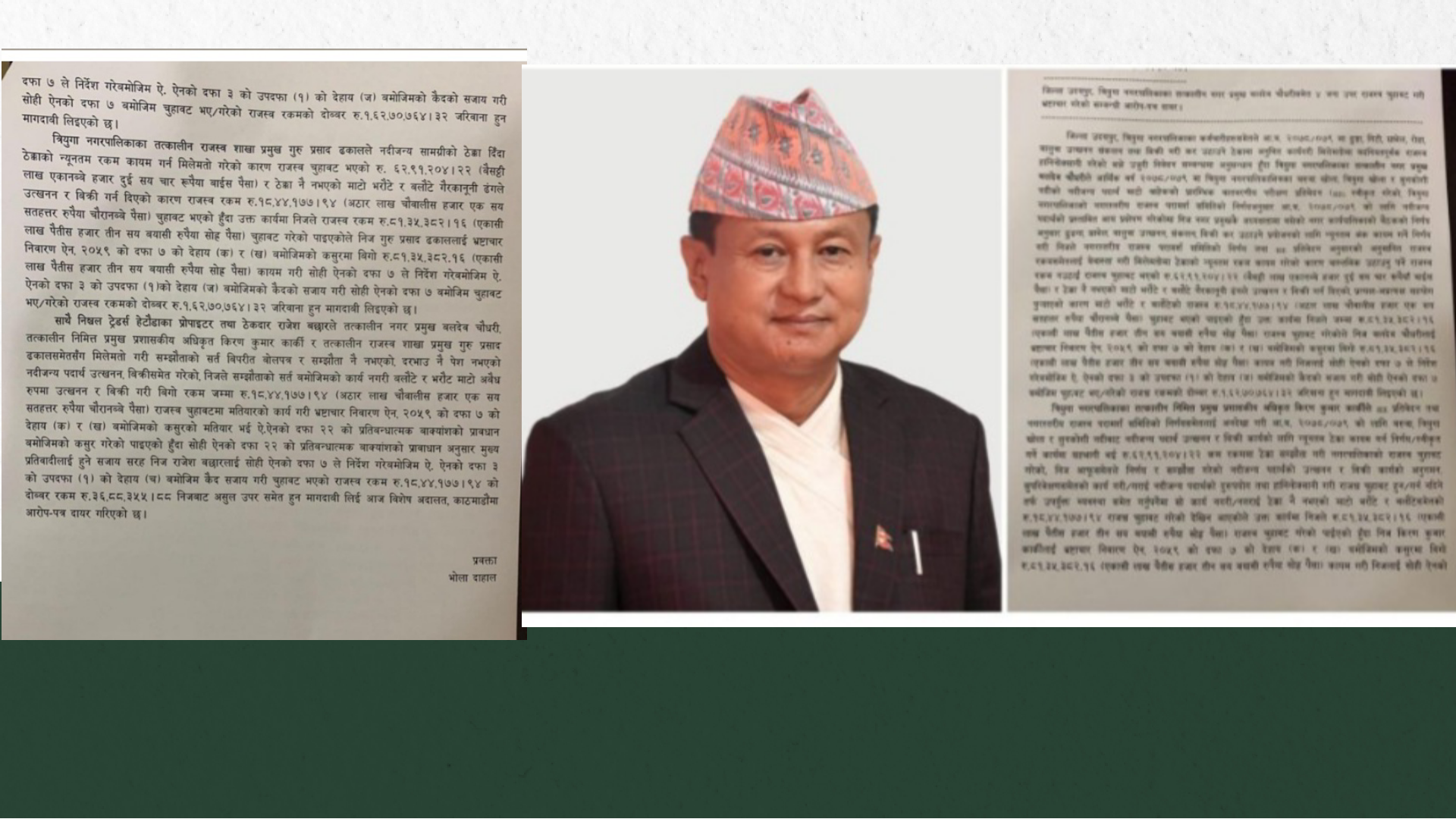 अख्तियार दुरूपयोग अनुसन्धान आयोगले बुधबार त्रियुगा नगरपालिकाका तत्कालीन नगरप्रमुख बलदेव चौधरी, तत्कालीन प्रमुख प्रशासकीय अधिकृत किरणकुमार कार्की, नगरपालिकाका तत्कालीन राजश्व शाखा प्रमुख गुरूप्रसाद ढकाल र निश्चल ट्रेडर्स हेटौंडाका प्रोपाइटर तथा ठेकेदार राजेश्वर बछारविरूद्ध राजस्व चुहावट गरी भ्रष्टाचार गरेको सम्बन्धी आरोप-पत्र दायर गरेको अख्तियारका प्रवक्ता भोला दाहालले जानकारी दिए ।
