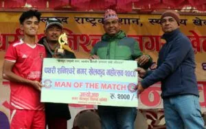 तर, गोल गर्न चुक्दा राइजिङले पराजय भोग्नुपर्यो । खेलको म्यान अफ द म्याच विजेता टिमको रोहन लिम्बु घोषित भए । लिम्बुलाई नगरपालिकाका लेखा अधिकृत पिताम्बर वस्तीले नगद रु. २ हजार र ट्रफी प्रदान गर्नुभएको थियो ।