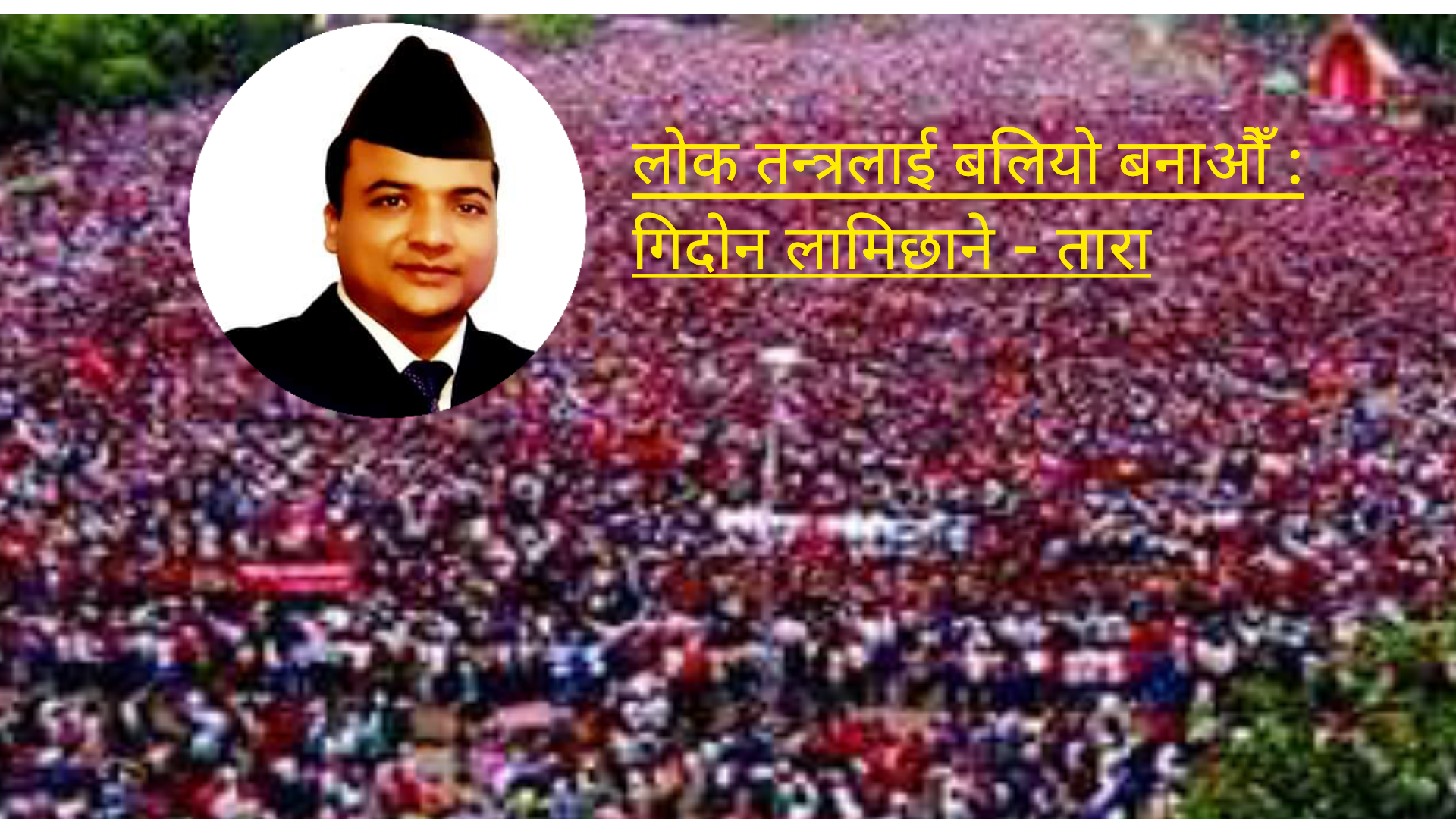 गिदाेन लामिछाने,तारा । नेपाल संघीय लोकतान्त्रिक गणतन्त्रात्मक मुलुक हो । लोकतन्त्र भनेको जनताको शासन विधि हो । लोकतन्त्र पनि मुलतः ३ प्रकारका हुन्छन् । पहिलो, पुँजीवादी लोकतन्त्र, दोस्रो सामाजिक लोकतन्त्र र तेस्रो समाजवादी लोकतन्त्र । नेपालमा लोकतन्त्रको स्थापना गर्नका लागि राजनीतिक दलहरुको मुख्य भूमिका रहेको छ र अहिलेको लोकतन्त्रमा बहुदलीय संसदीय प्रणाली अपनाइएको छ ।