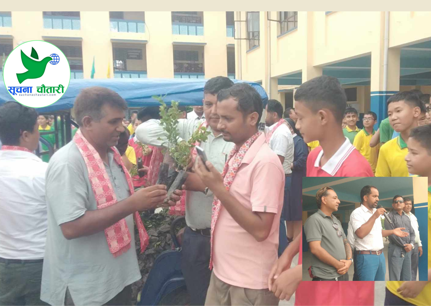 नेता आचार्य, नगर इञ्चार्ज बेदु गौतम, सन्तोष गौतम, नगर कमिटी अध्यक्ष बस्नेतसहितको टोलीले बिद्यालयमै पुगेर त्यहाँका करिब ३ सय बिद्यार्थी, शिक्षक, कर्मचारी र कतिपय अभिभावकहरुलाई समेत कागती, लिची, जामुन लगायतका विरुवा प्रदान गरेका थिए ।