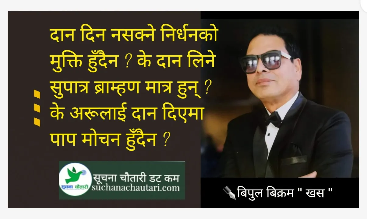 बिपुल बिक्रम ” खस ” नजिकको आफन्तको मृत्यु त अति पीडादायक हुन्छ भने आफ्नै पती, पत्नी, आमा, बुबा, पुत्र या पुत्रीको मृत्युमा झनै शोकाकूल भईन्छ । अझ कतिपय मानिसहरू मानसिक कमजोरीका कारण बिक्षिप्त समेत हुन पुग्दछन् । यस अवस्थामा मानिसमा मसान वैराग्य जाग्दछ, संसार निसार लाग्दछ र हरेक कुराबाट मोह समाप्त हुन्छ । शोकाकूल हृदयले केवल मृतकलाई मात्र सम्झन्छ । र यसै बेला गरुड पुराण सुनाइन्छ, पाप धर्मको ब्याख्या गरिन्छ, दानको महिमा सुनाएर अवचेतन अवस्थामा पुगेकाहरूलाई सक्दो दान गर्न परोक्ष रूपमा उक्साइन्छ ।