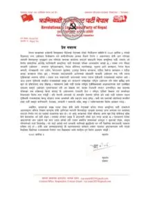 अर्कोतिर, सरकारको प्रमुख पदमा रहेका केपी ओली नेतृत्वको कथित नेपाल कम्युनिस्ट पार्टी (एमाले)ले अदालतद्वारा ललिता निवास काण्डमा दोषी ठहरिएका व्यापारी मिनबहादुर गुरुङको दानबाट प्राप्त जग्गामा दल कार्यालय बनाउने निर्णय गर्नु हद दर्जाको लज्जास्पद कुरा हो । यो आफू सरकारमा रहेको मौकामा जग्गा घुस लिई दोषीलाई मुक्ति दिने खेलबाहेक अरु केही होइन । यसबाट सरकार प्रमुख नै भ्रष्टाचारी रहेको कुरा स्पस्ट भएको छ । त्यसकारण देशमा भ्रष्टाचारको जरा उखेल्ने एक मात्र उपाय भनेको यही दलाल संसदीय व्यवस्थाको टालटुल र सुधारको होइन, आमूल परिवर्तनको बाटो लिनुपर्दछ । त्यो बाटो भनेको नयाँ जनवादी क्रान्तिको खुड्किलो पार गर्दै बैज्ञानिक समाजवादी व्यवस्था हासिल गर्नु हो । हामी आम जनसमुदायलाई यी घटनाक्रमबाट वर्तमान शासन व्यवस्था भ्रष्टाचारग्रस्त बन्दै गएको स्थितिमा वैकल्पिक राज्यसत्ताको निर्माण तथा विकासका लागि संगठित हुन विशेष आह्वान गर्दछौँ ।”