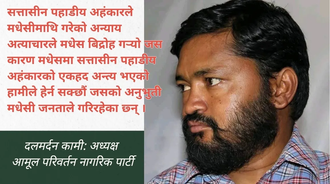 सत्तासीन पहाडीय अहंकारले मधेसीमाथि गरेको अन्याय अत्याचारले मधेस बिद्रोह गर्यो जस कारण मधेसमा