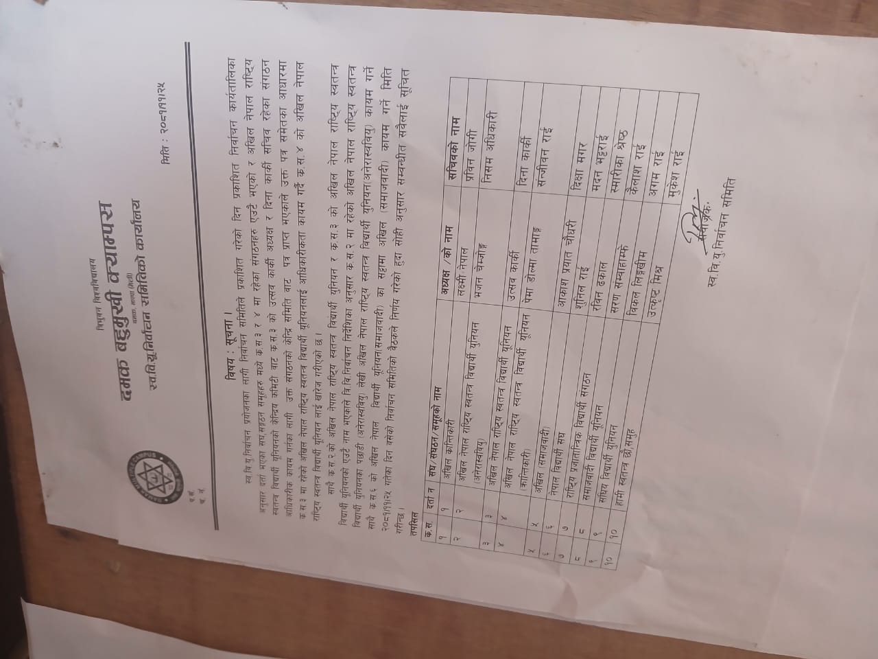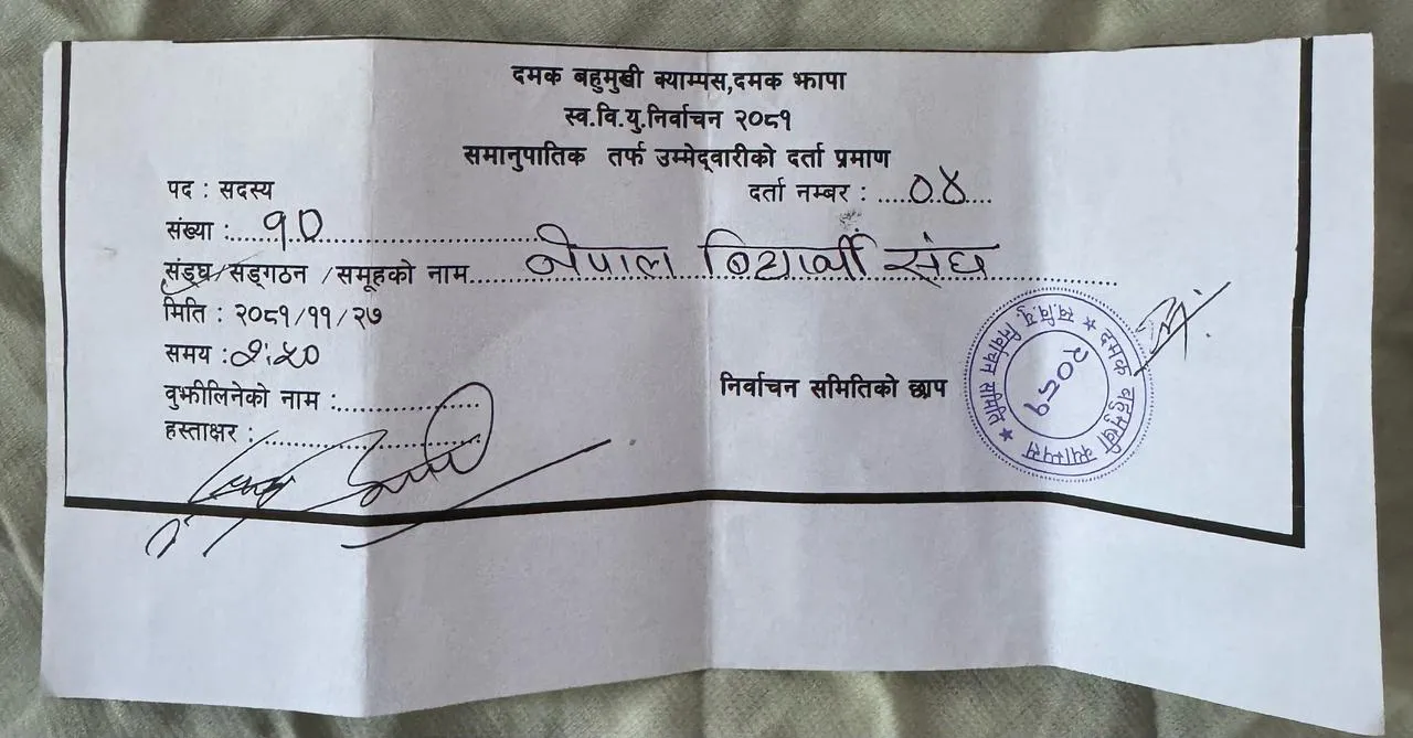 यसै बिचमा नेबिसंघ दमक बहुमुखी क्याम्पस कमिटिका सभापति सुनिल राइले यो झमेला स्वबियु निर्वाचन समितिले निकालेको हो ।योयसको हल निकाल्नु पर्छ नभए हामी चुनाव हुन्न दिन्नौ।