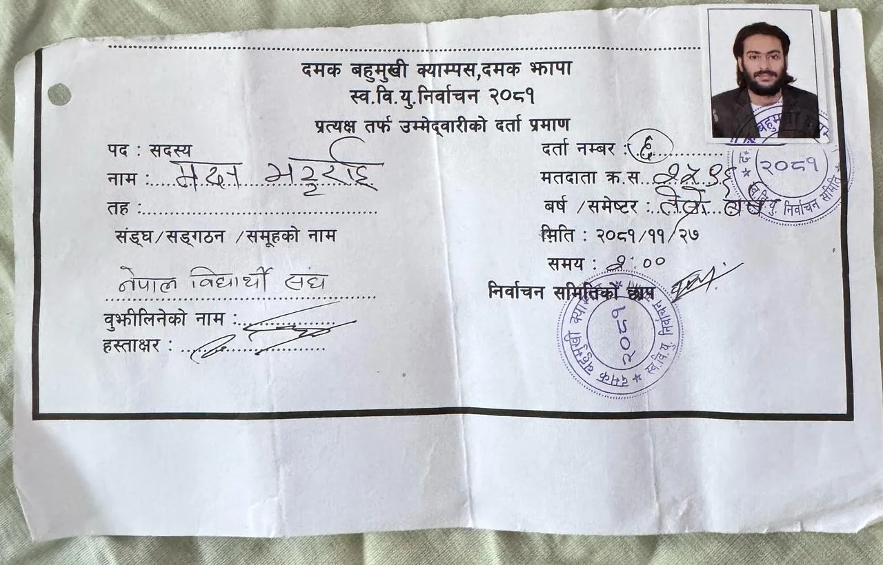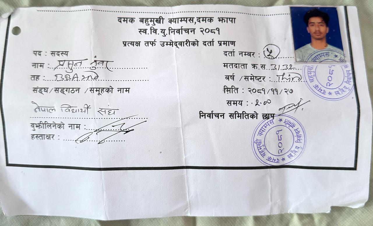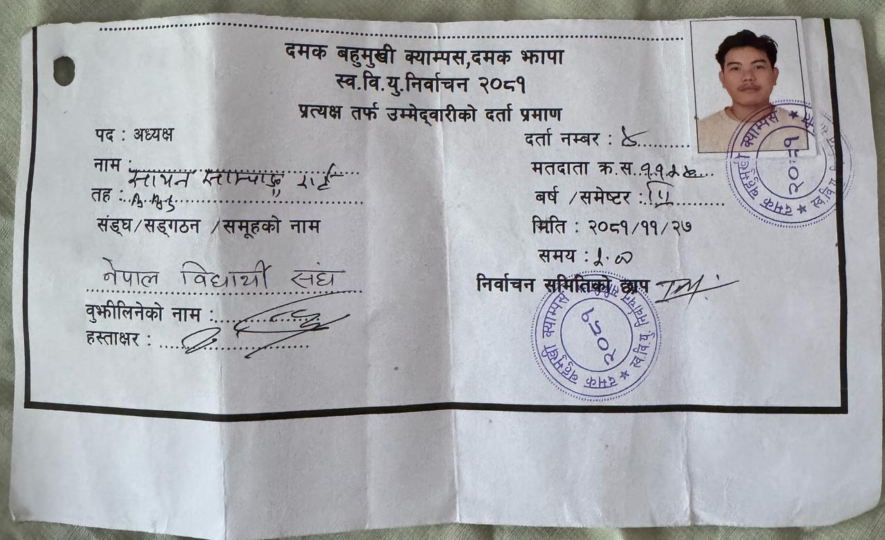 नेबिसंघले दमक बहुमुखी क्यामपसको लागि आफ्नो उम्मेदवार यहि हो भनेर भन्न नसकेको अवस्था छ।