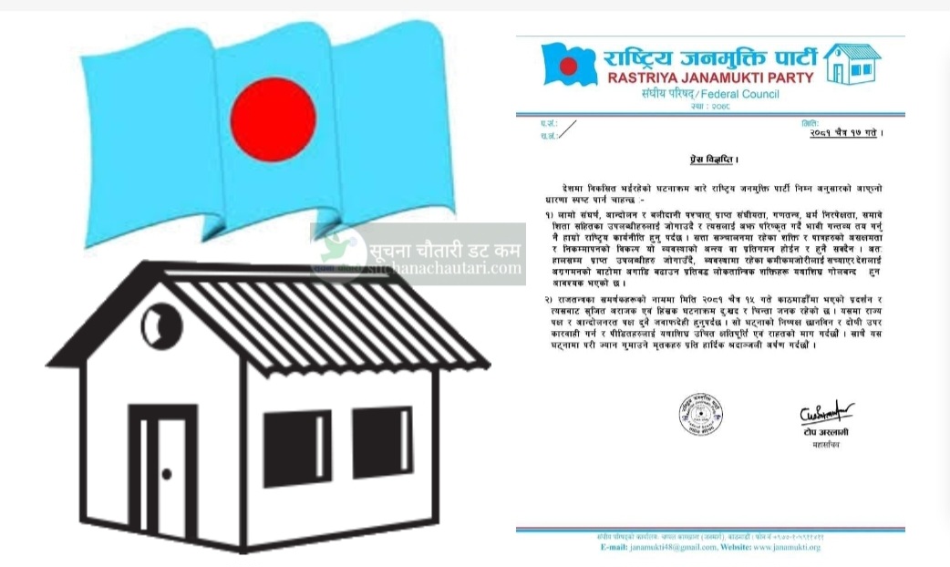 देशमा विकसित भईरहेको घटनाक्रम बारे राष्ट्रिय जनमुक्ति पार्टी निम्न अनुसारको आफ्नो धारणा स्पष्ट पार्न चाहन्छ :-