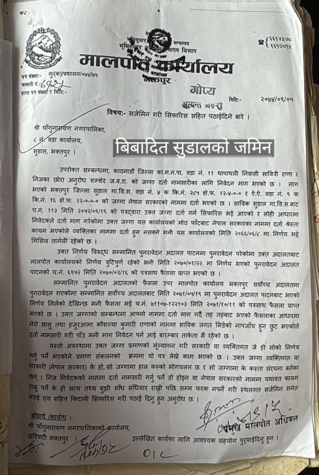 के बिषयमा किन चलखेल गरिरहेको छ यो अनुसन्धानको बिषय हुनु पर्छ भने, चागुनारायण नगरपालिकाले साे बिबाद रहित जमिनमा बनाउन ठोस पहल नगरि वडा नम्बर ८ सुडाल स्थित बिबादास्पद जमिनमा किन बनाउन चाहन्छ? जाे जमिन ब्यक्तिकाे नाममा दर्ता हुने प्रकृयामा रहेकाे बिबादित जमिन हाे।