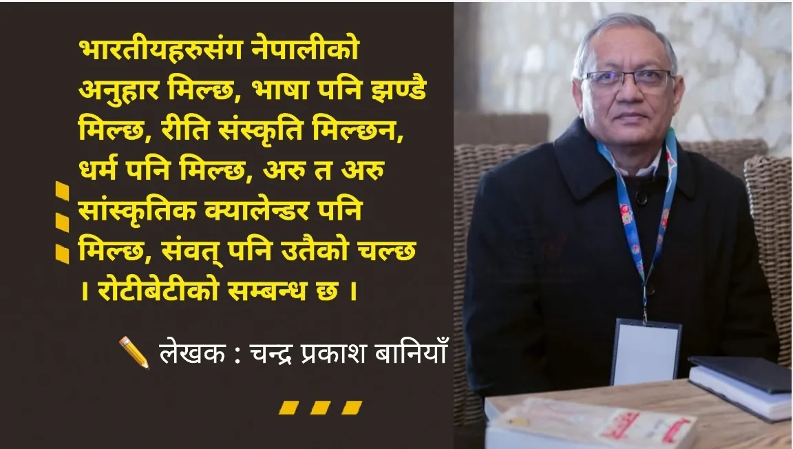 उनीहरुलाई लाग्दोरहेछ : भारतीयहरुसंग नेपालीको अनुहार मिल्छ, भाषा पनि झण्डै मिल्छ, रीति संस्कृति मिल्छन, धर्म पनि मिल्छ, अरु त अरु सांस्कृतिक क्यालेन्डर पनि मिल्छ, संवत् पनि उतैको चल्छ । रोटीबेटीको सम्बन्ध छ । यताबाट पानी जान्छ, उताबाट नुन आउँछ ।