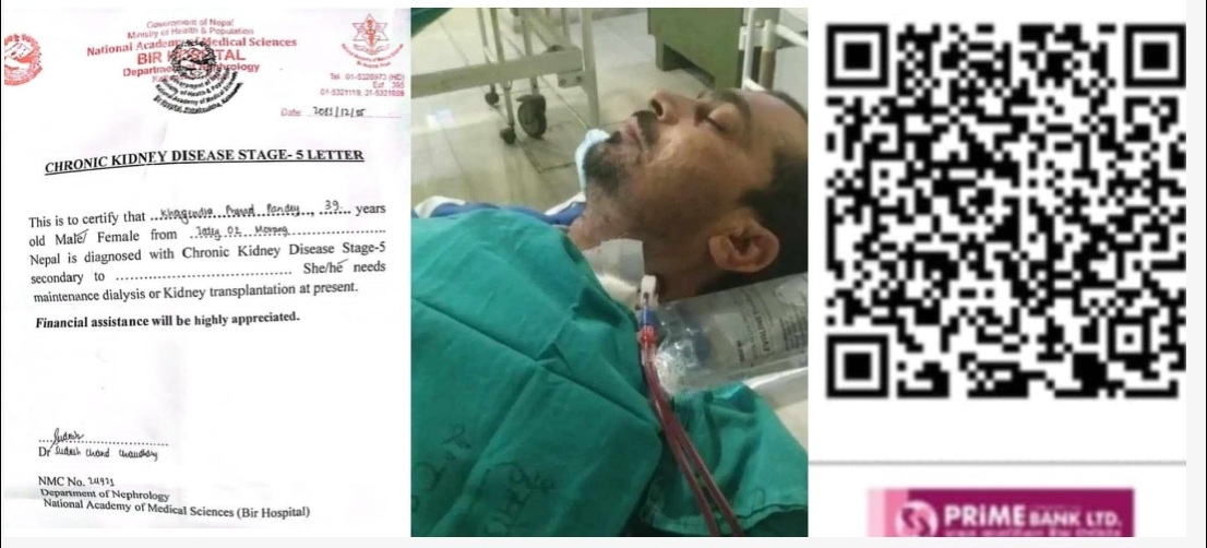 कृष्ण कुँवर । मोरङको लेटाङ नगरपालिका वडा नं. ८ निवासी ३९ वर्षीय खगेन्द्रप्रसाद पाण्डेको दुवै मृगौलाले काम नगर्दा उपचारको अभाव हुँदा समस्यामा परेका छन्।