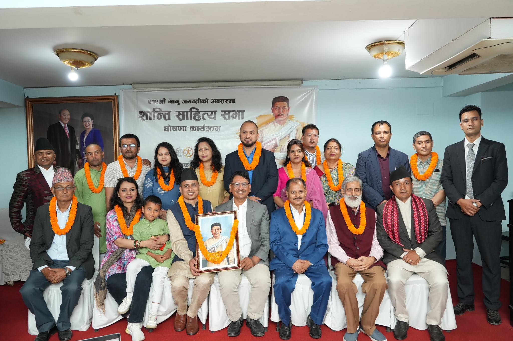 बिश्व शान्ति तथा एकिकृत परिवार संघ तथा सिद्धान्त अनुसन्धान महाबिधालय संघको सयुक्त्त आयोजनामा शान्ति साहित्यक सभा तथा एक लाख एक रुपैया राशीको शान्ति साहित्यक पुरस्कार धोषणा गरिएको छ । साहित्यक सभामा आयोजक विश्व शान्ति तथा एकीकृत परिवार ससंघका दक्षिण एसियाका निर्देशक कृष्ण बहादुर अधिकारी सेवकले घोषणा उक्त पुरस्कारको घोषणा गरेको हुन् । गीतकार समेत रहेका अधिकारीले आदिकवि भानुभक्त आचार्यको जन्म दिन नेपाली भाषाको गौरव गाउने महान दिन भएको बताएका छन् । अधिकारीले नेपाल मात्र नभइ दार्जलिङका पहाडसम्म दौरा सुरुवाल, गुन्युचोलो, नरसिंहा, झ्याम्टोको संयोजनले गुञ्जायमान हुने गरेको बताए ।