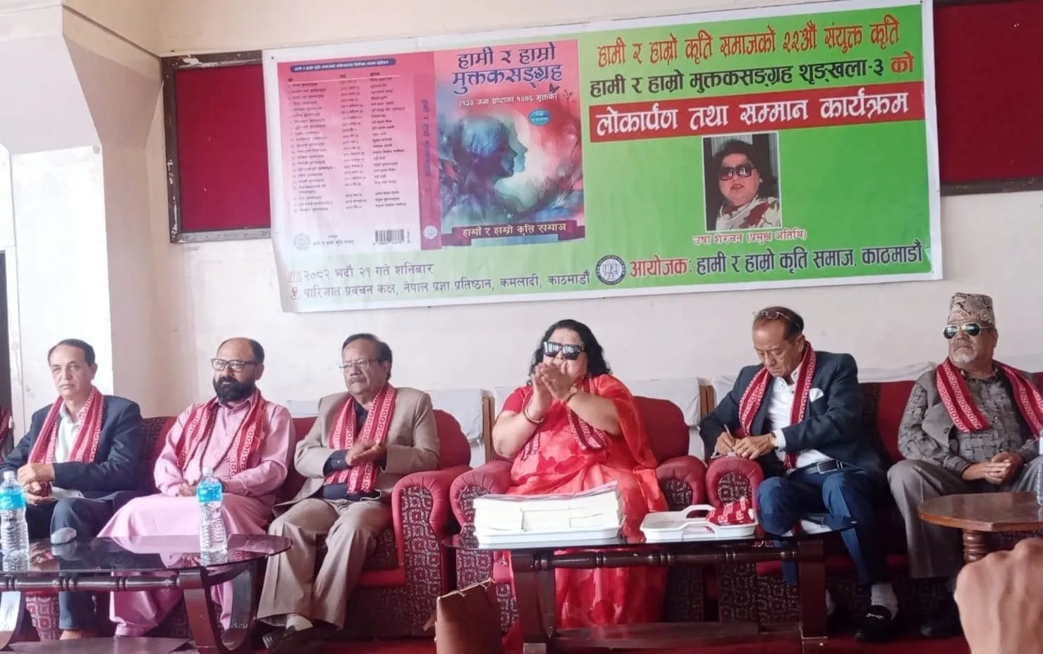 वरिष्ठ साहित्यकार उषा शेरचन प्रमुख अतिथि रहेको उक्त कार्यक्रममा प्रतिनिधि सभा सदस्य गगन थापा, नेपाल मुक्त प्रतिष्ठानका अध्यक्ष रामकाजी कोने, उपाध्यक्ष वियोगी बुढाथोकी, लीलाध्यज थापा साहित्य प्रतिष्ठानका अध्यक्ष, विजयध्वज थापा, सुन्दरहरैँचा कला साहित्य विकास समितिका अध्यक्ष डा. छवि वैरागी घिमिरे, सामाजिक अभियन्ता मोहन नेपाल, हातेमालो साहित्य सङ्गमका अध्यक्ष सुनिल अधिकारी, मुक्तकालय नेपालका अध्यक्ष निलाञ्जला भारद्वाज, भूगोल साहित्य समाजका अध्यक्ष विनोद नेपाललगायतका विशिष्ट व्यक्तित्वहरूको बाक्लो उपस्थिति रहेको थियो।