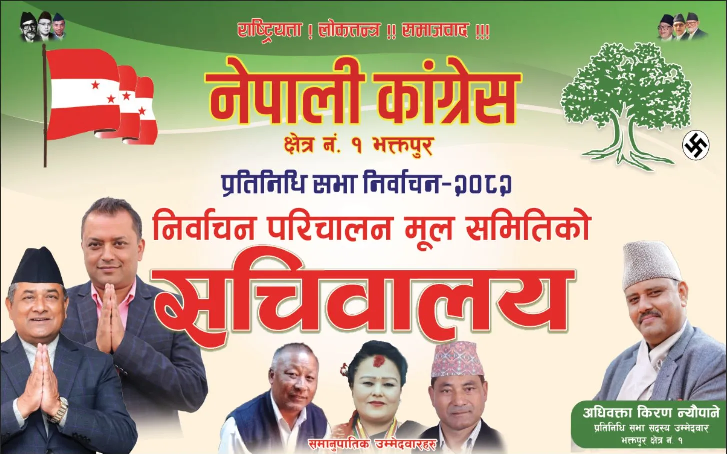 भक्तपुर। आगामी फागुन २१ गते हुने प्रतिनिधिसभा सदस्य निर्वाचनलाई लक्षित गर्दै दुई निर्वाचन क्षेत्र रहेकाे भक्तपुर कांग्रेसले निर्वाचन क्षेत्र नं. १ मा प्रत्येक्ष तर्फ अधिवक्ता किरण न्याैपाने साथै समानुपाति तर्फ डा. गंगा लक्ष्मी अवाल , बिनाेद प्रकाश कायष्ठ र मदन कृष्ण श्रेष्ठ सहितले ९ वडा रहेकाे चाँगानारायण नगरपालिकामा चुनाव प्रचार प्रसार सम्पर्क कार्यालय उद्घाटन सम्पन्न गरेकाे छ।