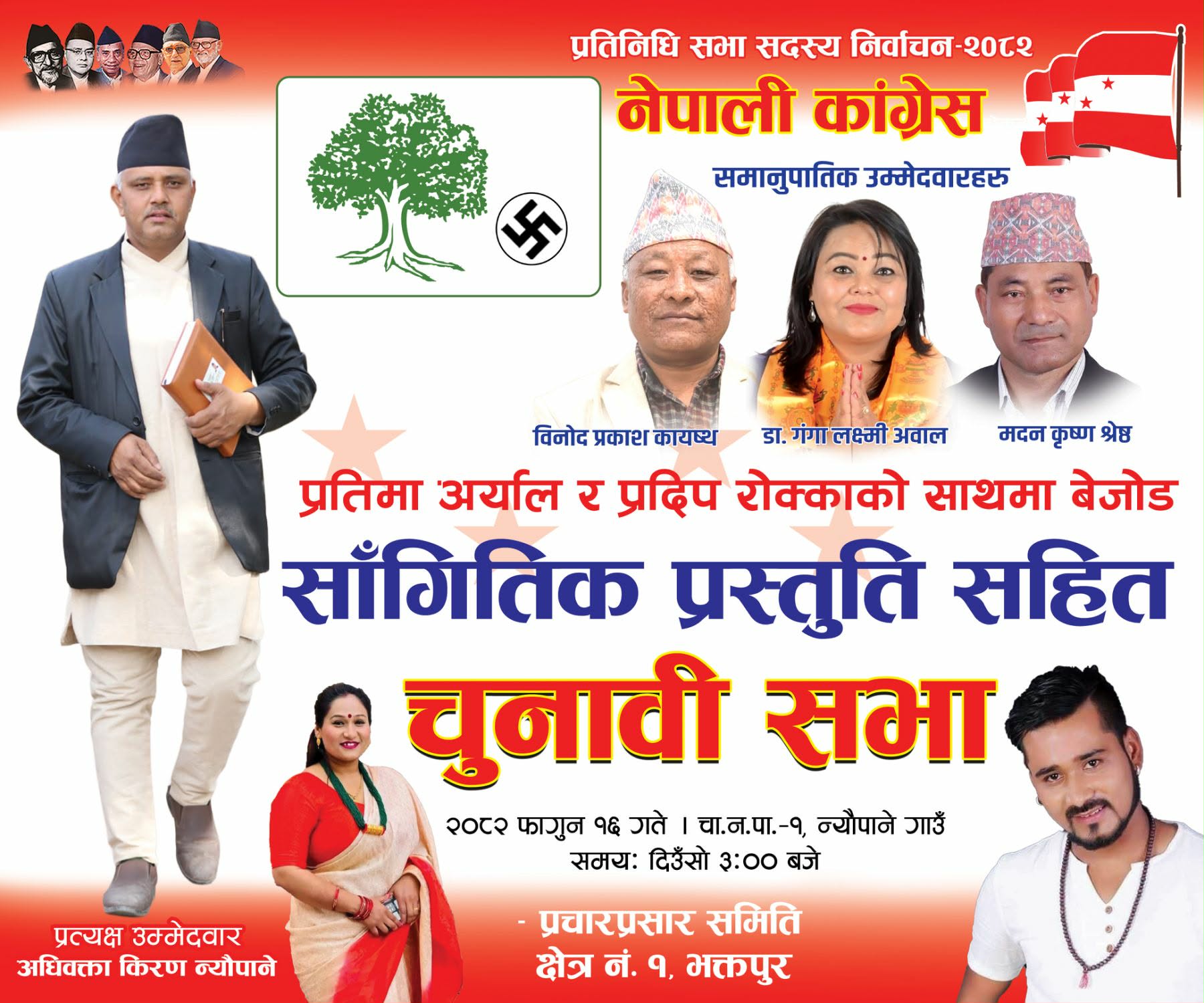 २:०० बजे घरदैलो कार्यक्रमकाे समापन पश्चात् ३:०० बजे चाँगुनारायण नगरपालिका वडानं १ र ३ सिमाना न्याैपाने गाउँ स्थित चाँगुनारायण मा.बि. छेउकाे खुल्ला मैदानमा चुनावी सभा हुने प्रचार प्रसार संयाेजक थापाले बताएका छन्।