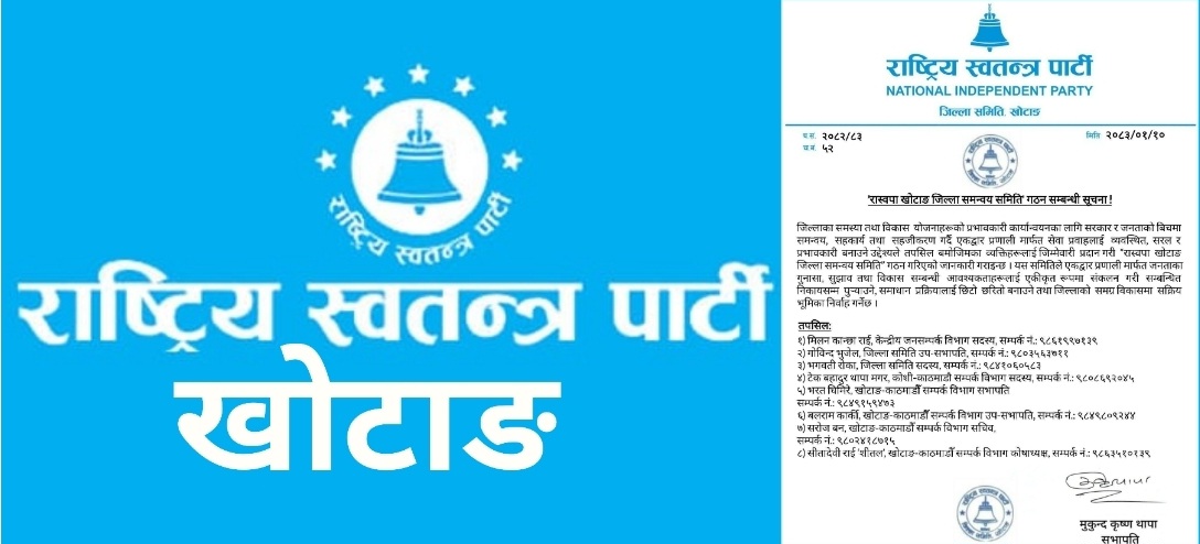 • रास्वपा खाेटाङद्वारा जिल्ला समन्वय समिति गठन, विकास र सेवा प्रवाहलाई प्रभावकारी बनाउने लक्ष्य