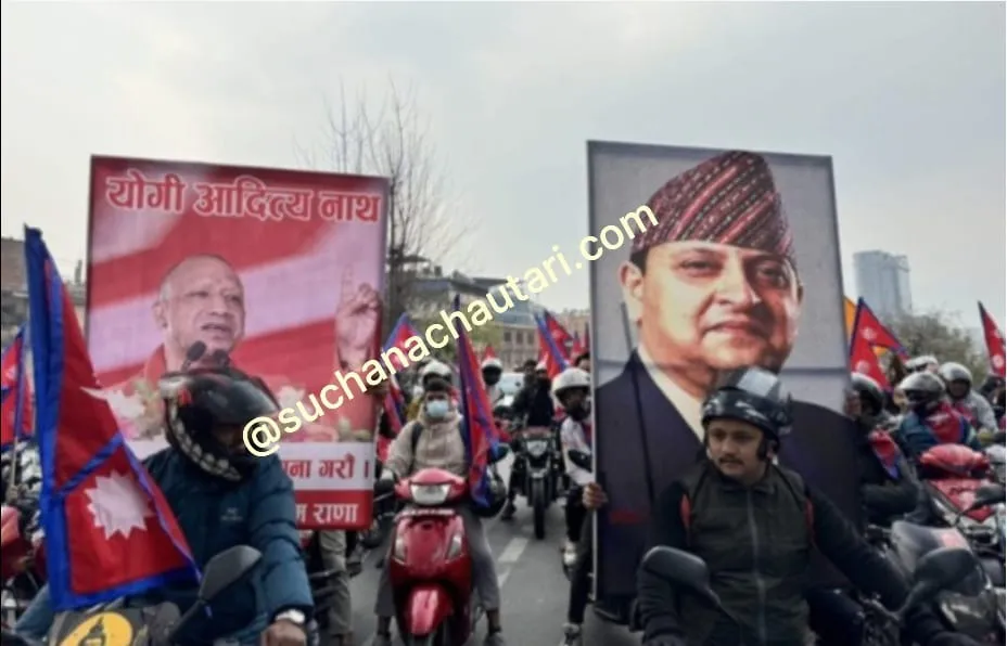 पूर्व राजा ज्ञानेन्द्र शाहकाे स्वागतमा याेगी आदित्यनाथकाे तस्वीर प्रयाेग, आदित्यनाथले शाहलाई उकासेकाे आशंका