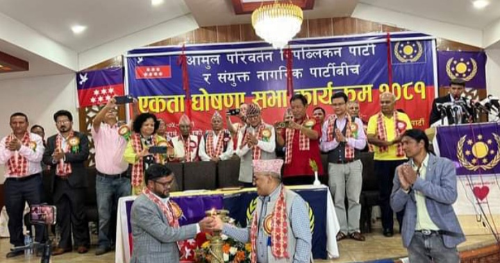 काठमाडौं । विभिन्न समय र दलहरु सँगकाे छलफल तथा एकता प्रायस पछि अन्तत संयुक्त नागरिक पार्टी र आमूल परिवर्तन रिपव्लिकन पार्टीबिच पार्टी एकता भएको छ। ललितपुरकाे धाेबिघाट स्थित सिद्धार्थ कटेजमा आज आयोजित कार्य क्रममा दुई पार्टी बिचकाे एकता घोषणा भई आमूल परिवर्तन नागरिक पार्टी नामाकरण गरिएको छ। आमूल परिवर्तन रिपब्लिकन पार्टीका अध्यक्ष भरत गिरि तथा […]