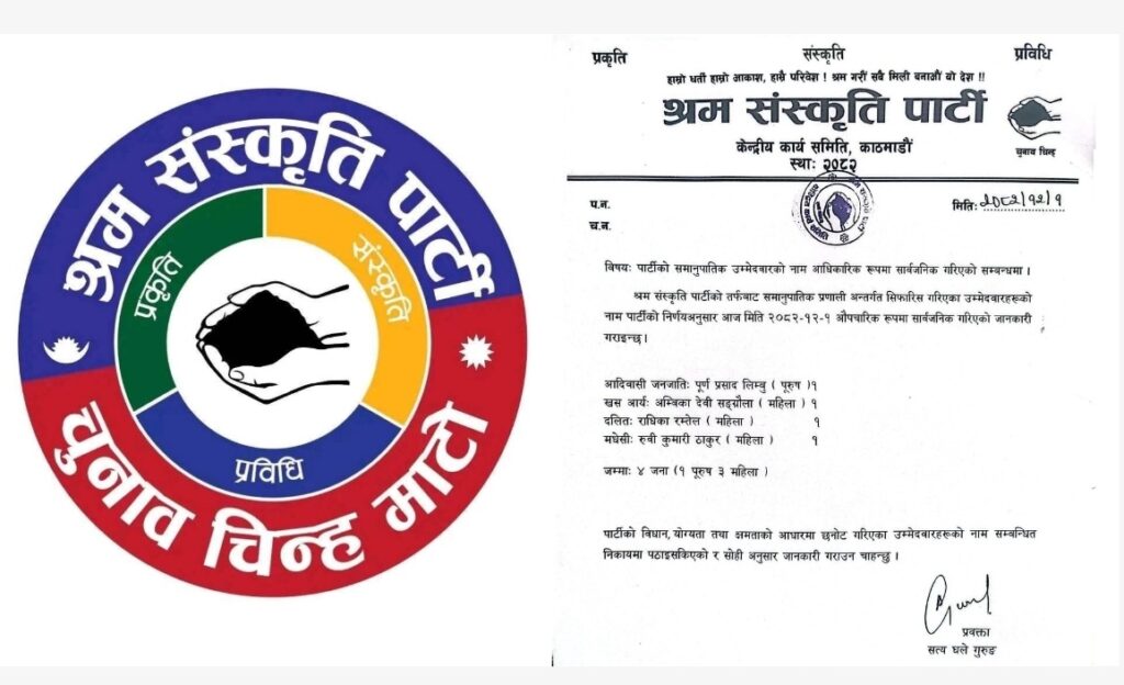 श्रम संस्कृति पार्टीले टुङ्ग्यायो समानुपातिक सांसदका चार नाम